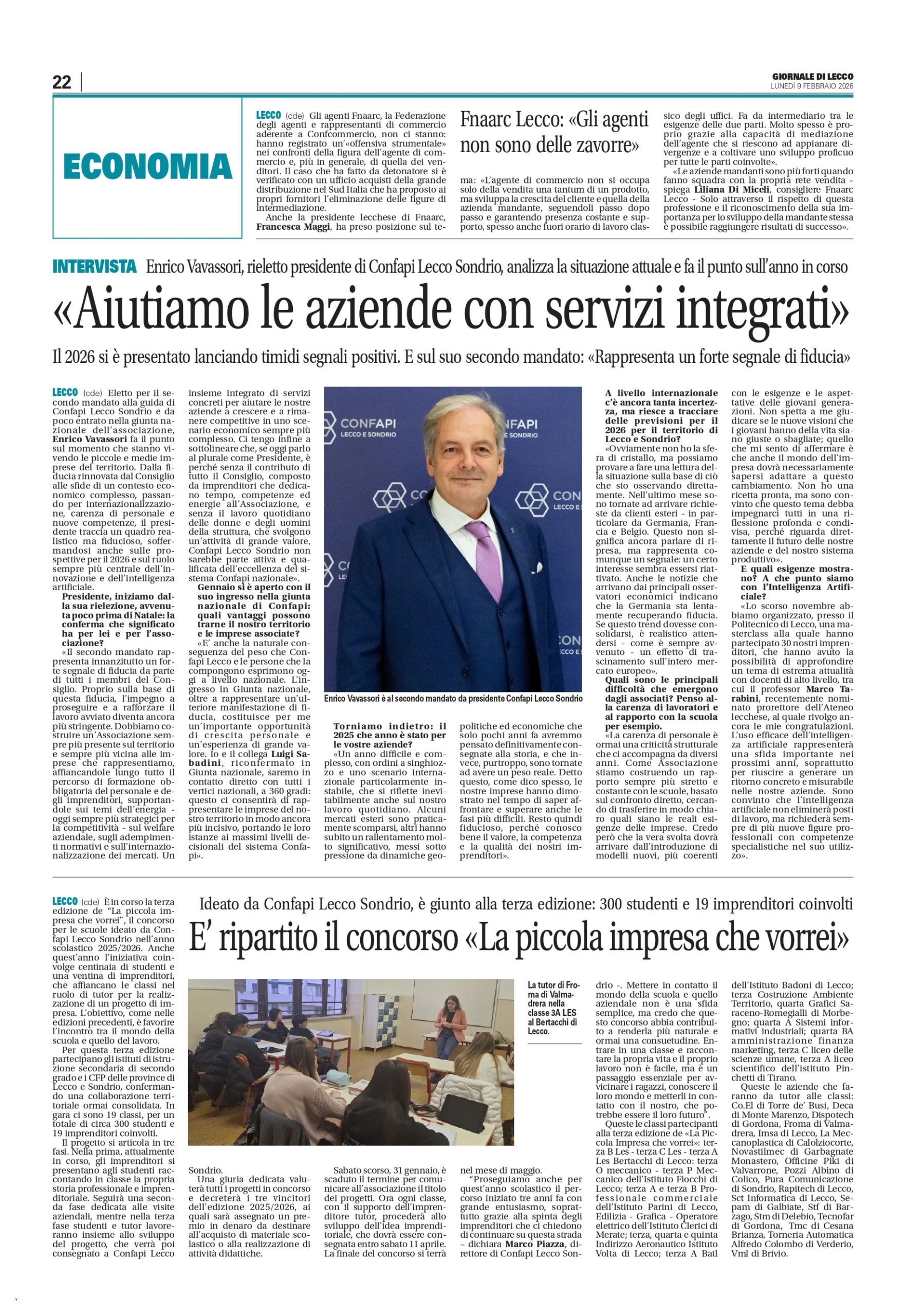 L’intervista del presidente Enrico Vavassori rilasciata al Giornale di Lecco lunedì 9 febbraio 2026.