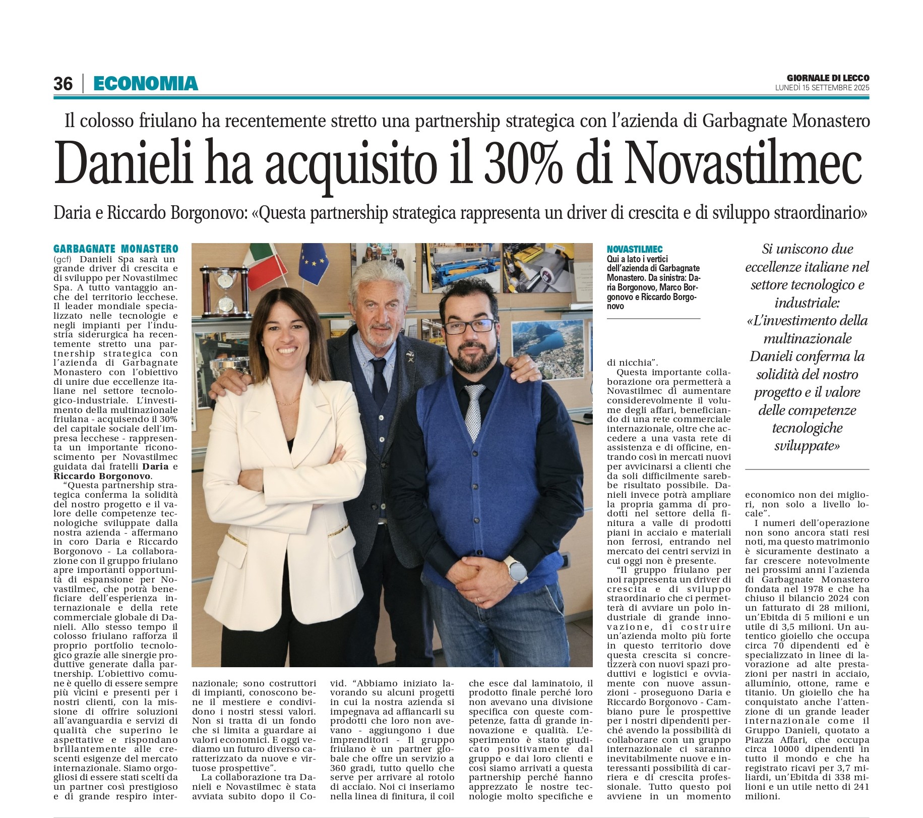 Il Giornale di Lecco del 15 settembre 2025, articolo sulla nostra associata.