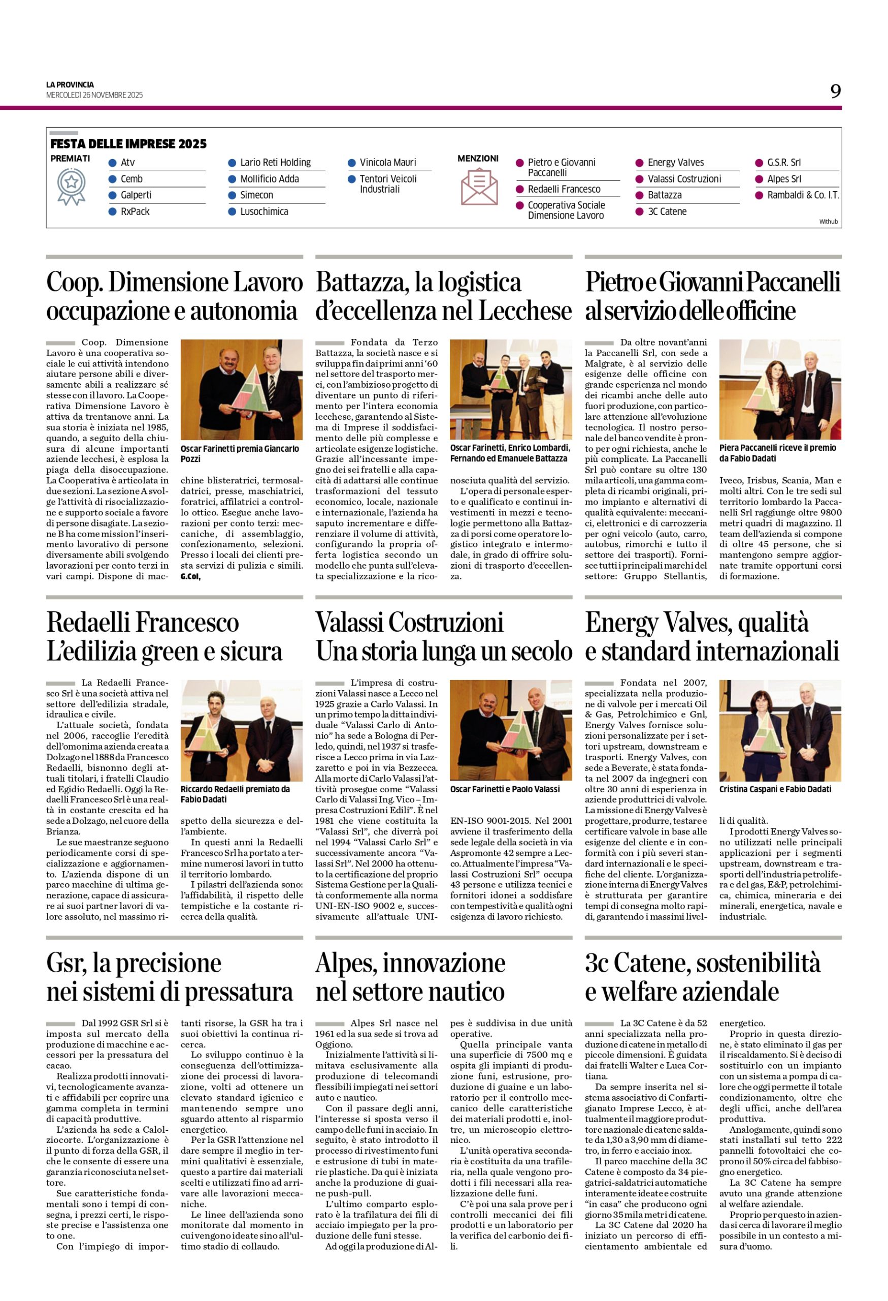 Sono state premiate tre nostre aziende: Alpes, Cooperativa Dimensione Lavoro e Mollificio Adda.